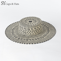 SY HATS 100% 紙ストロー柄ワイドブリムボーターハット夏用麦わら帽子カスタムOEM利用可能