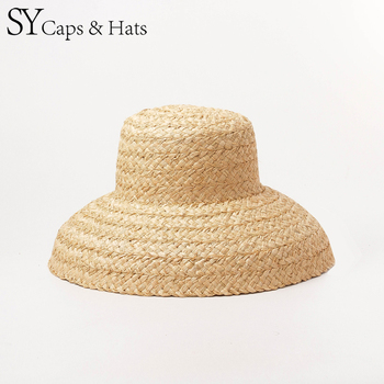 SY HATS 100% Natural Raffia Straw Hand Weaved Wide Brim Cloche Hat Mulheres Verão Vintage Chapéu de Palha Personalizado OEM Disponível